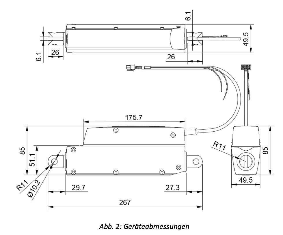 Abmessungen: 85 × 50 × 267 mm